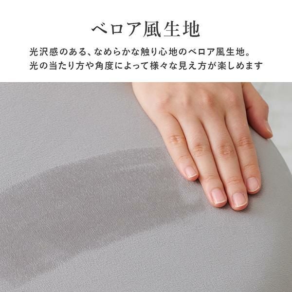 しっとりとした肌触りのベロア風生地は光沢感があり、光の当たり方や角度によって様々な見え方が楽しめます。