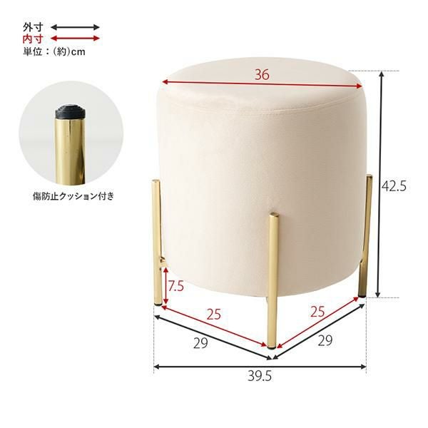 すっきりしたシルエットにゴールドの脚がな上品な印象を与えるスツール。