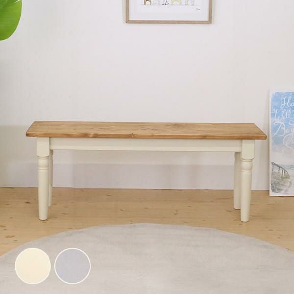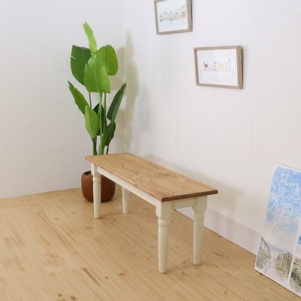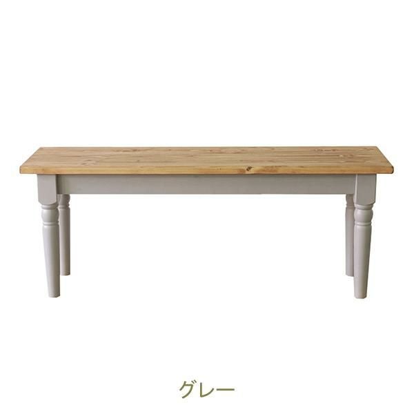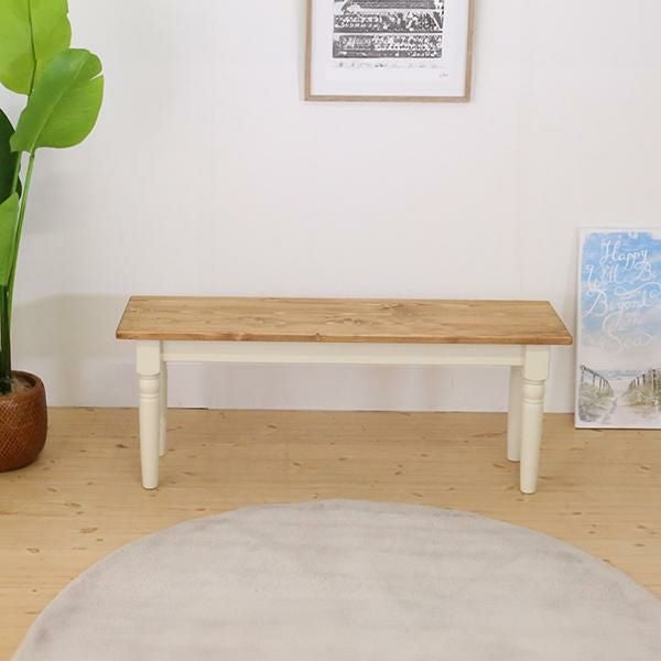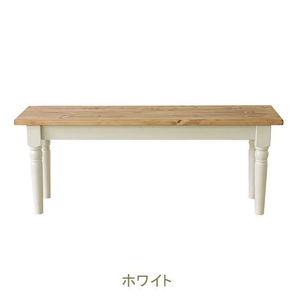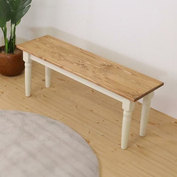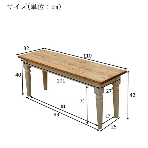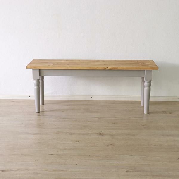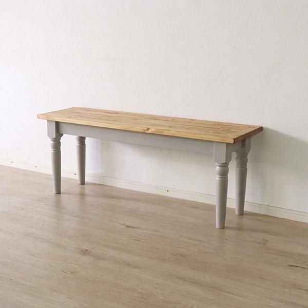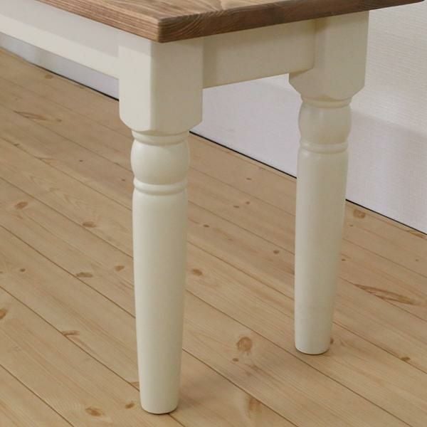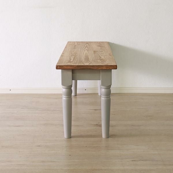 スクエアなフォルムと脚のアンティークな装飾のディテールが特徴的なダイニングベンチ。