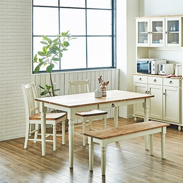 定番のホワイトは、ナチュラル色のパイン無垢材と合わせることで、あたたかみのある優しい雰囲気のフレンチカントリーを演出してくれます。