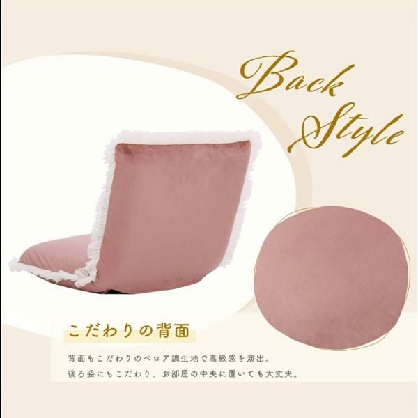 くすみカラーと周囲にあしらったプリーツフリルレースが可愛く、肌触りの良いベロア風生地でゆったりとしたおうち時間を楽しめそう。