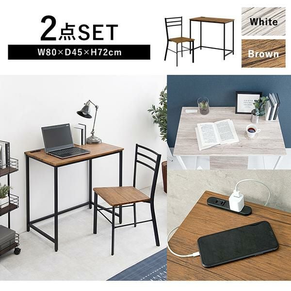 コンパクトでちょうど良い84×45cmのデスクには便利な2口コンセント付き!