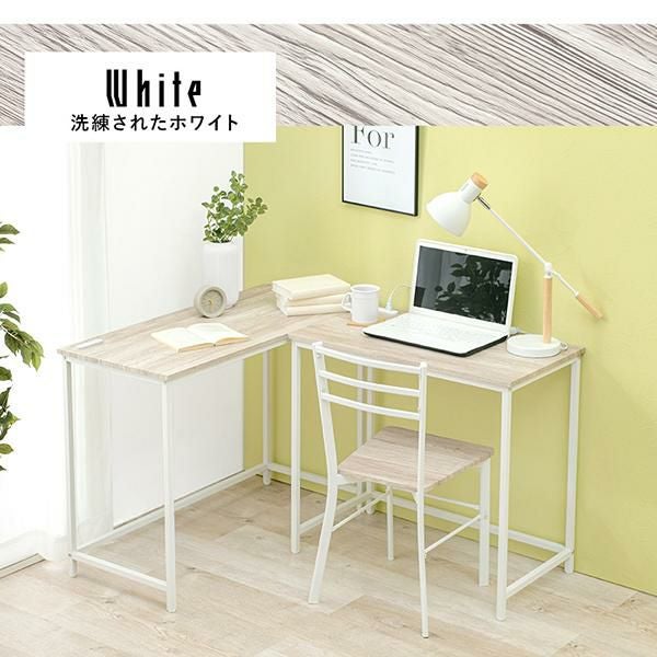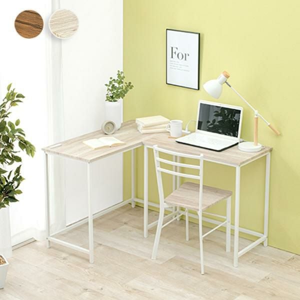 作業が捗る「L字型スタイル」はしっかりとした作業スペースが欲しい時におすすめ。PCや資料、デスクライトを置いても広々快適です。