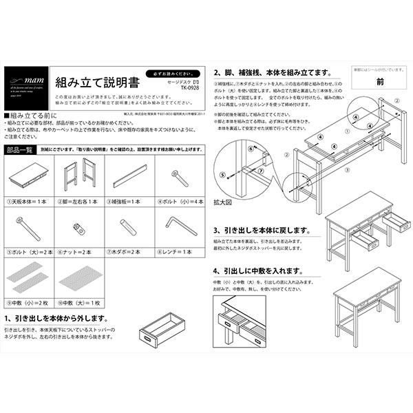 【幅91cm】北欧カントリースタイルの引出し付きデスク