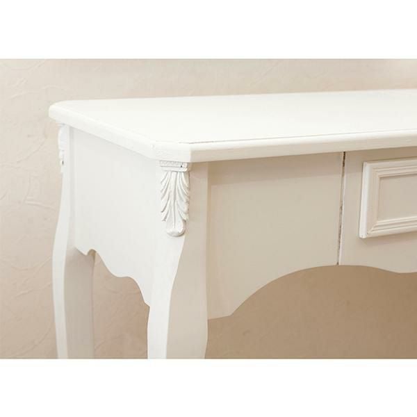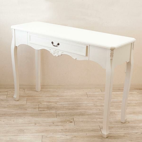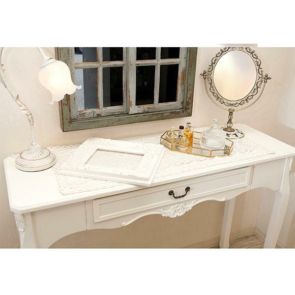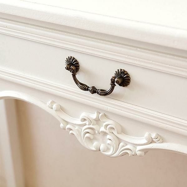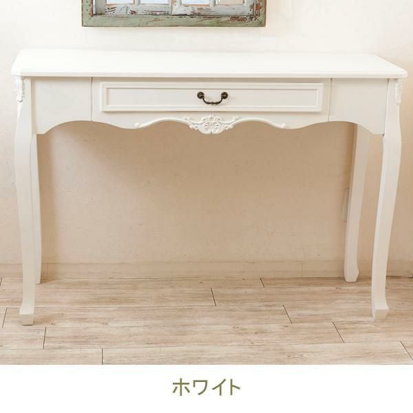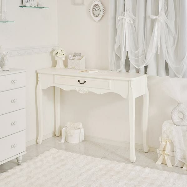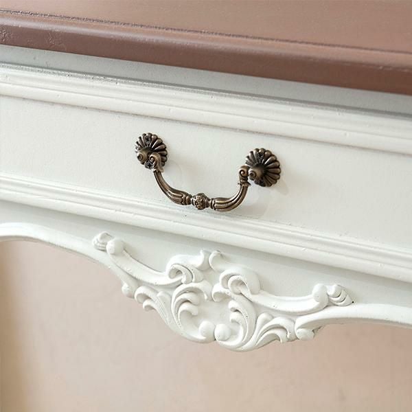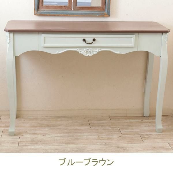 お気に入りのインテリアのディスプレイにもぴったりな、引き出し付きデスク。優雅な猫脚に、アンティークな装飾がムードたっぷりなデザインです。デスクとしてはもちろん、本や観葉植物などの小物をおしゃれに飾れます。テイストを選ばずコーディネートしやすい「ホワイト」と、個性的な「ブルー/ブラウン」の2色展開です。