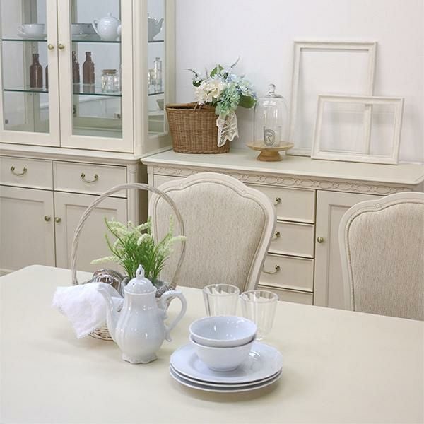 18世紀、ルイ15世時代のフランス宮廷から始まり、貴族の宮殿や上流階級のご婦人を中心に流行した、直線を排した軽快で華麗なフランス・サロン文化を彩る装飾様式だったロココ調家具のエッセンスを残したフレンチカントリースタイルを、よりカジュアルに実用的なアイテムでセレクトしたトータルコーディネートシリーズです。マホガニー材を贅沢に使い、表面は厳選された木目を使った化粧張りを施し、フレンチエレガンスの代名詞といえる「カブリオールレッグ」(猫脚)と、なめらかな女性的な美しいラインとマホガニー無垢材を削り出した彫刻が特徴です。