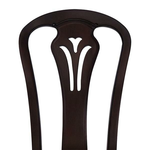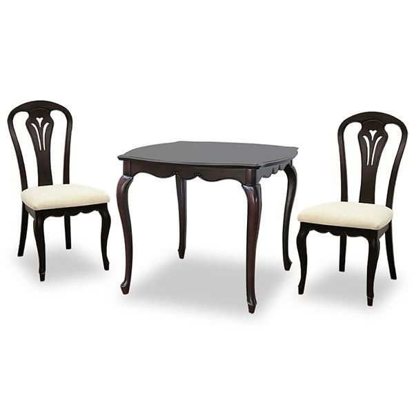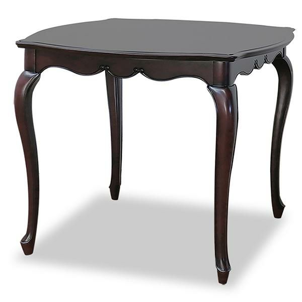 18世紀、ルイ15世時代のフランス宮廷から始まり、貴族の宮殿や上流階級のご婦人を中心に流行した、直線を排した軽快で華麗なフランス・サロン文化を彩る装飾様式だったロココ調家具のエッセンスを残したフレンチカントリースタイルを、よりカジュアルに実用的なアイテムでセレクトしたトータルコーディネートシリーズです。マホガニー材を贅沢に使い、表面は厳選された木目を使った化粧張りを施し、フレンチエレガンスの代名詞といえる「カブリオールレッグ」(猫脚)と、なめらかな女性的な美しいラインとマホガニー無垢材を削り出した彫刻が特徴です。