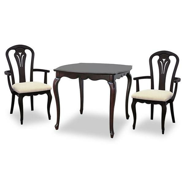18世紀、ルイ15世時代のフランス宮廷から始まり、貴族の宮殿や上流階級のご婦人を中心に流行した、直線を排した軽快で華麗なフランス・サロン文化を彩る装飾様式だったロココ調家具のエッセンスを残したフレンチカントリースタイルを、よりカジュアルに実用的なアイテムでセレクトしたトータルコーディネートシリーズです。マホガニー材を贅沢に使い、表面は厳選された木目を使った化粧張りを施し、フレンチエレガンスの代名詞といえる「カブリオールレッグ」(猫脚)と、なめらかな女性的な美しいラインとマホガニー無垢材を削り出した彫刻が特徴です。