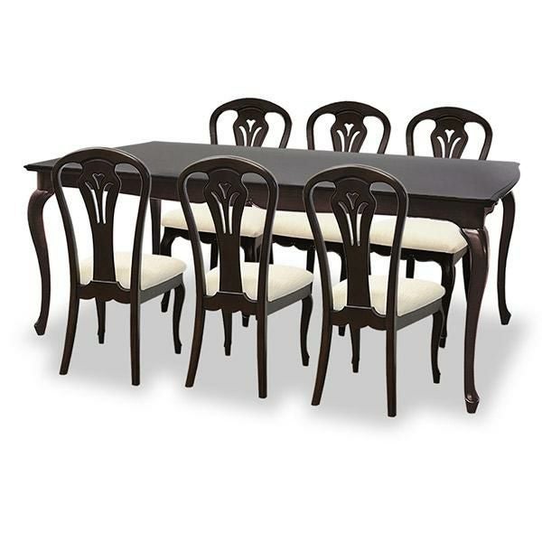 18世紀、ルイ15世時代のフランス宮廷から始まり、貴族の宮殿や上流階級のご婦人を中心に流行した、直線を排した軽快で華麗なフランス・サロン文化を彩る装飾様式だったロココ調家具のエッセンスを残したフレンチカントリースタイルを、よりカジュアルに実用的なアイテムでセレクトしたトータルコーディネートシリーズです。マホガニー材を贅沢に使い、表面は厳選された木目を使った化粧張りを施し、フレンチエレガンスの代名詞といえる「カブリオールレッグ」(猫脚)と、なめらかな女性的な美しいラインとマホガニー無垢材を削り出した彫刻が特徴です。