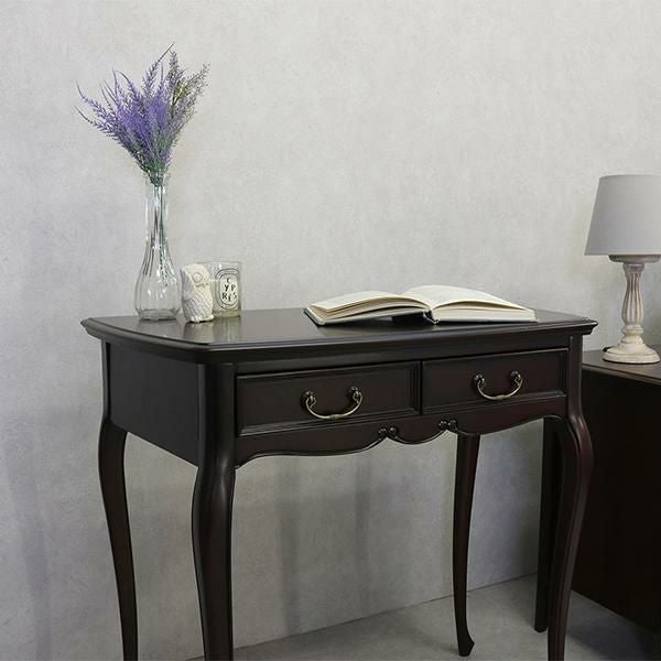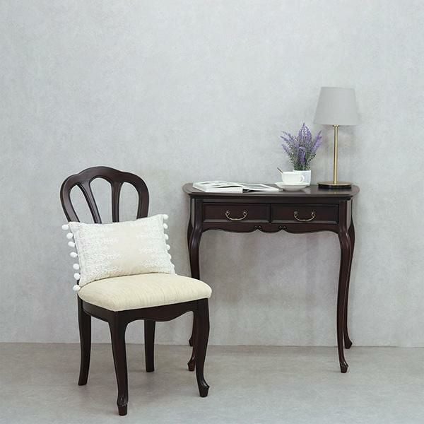 18世紀、ルイ15世時代のフランス宮廷から始まり、貴族の宮殿や上流階級のご婦人を中心に流行した、直線を排した軽快で華麗なフランス・サロン文化を彩る装飾様式だったロココ調家具のエッセンスを残したフレンチカントリースタイルを、よりカジュアルに実用的なアイテムでセレクトしたトータルコーディネートシリーズです。マホガニー材を贅沢に使い、表面は厳選された木目を使った化粧張りを施し、フレンチエレガンスの代名詞といえる「カブリオールレッグ」(猫脚)と、なめらかな女性的な美しいラインとマホガニー無垢材を削り出した彫刻が特徴です。
