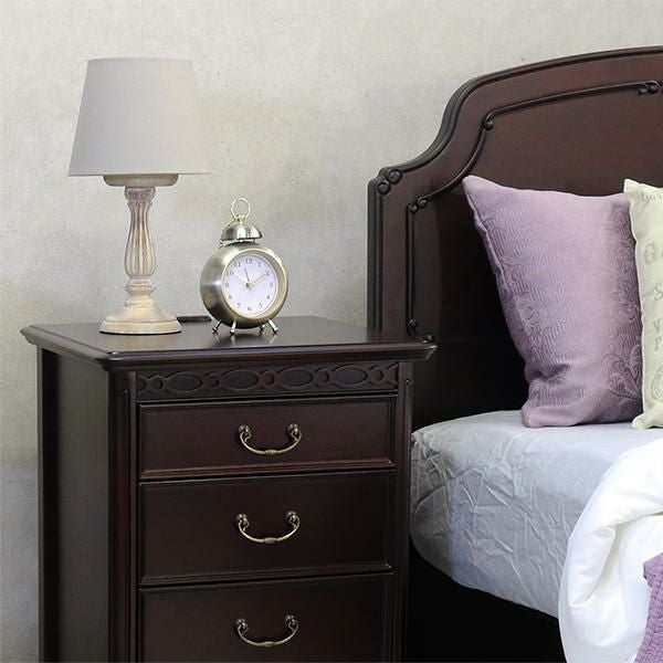 18世紀、ルイ15世時代のフランス宮廷から始まり、貴族の宮殿や上流階級のご婦人を中心に流行した、直線を排した軽快で華麗なフランス・サロン文化を彩る装飾様式だったロココ調家具のエッセンスを残したフレンチカントリースタイルを、よりカジュアルに実用的なアイテムでセレクトしたトータルコーディネートシリーズです。マホガニー材を贅沢に使い、表面は厳選された木目を使った化粧張りを施し、フレンチエレガンスの代名詞といえる「カブリオールレッグ」(猫脚)と、なめらかな女性的な美しいラインとマホガニー無垢材を削り出した彫刻が特徴です。