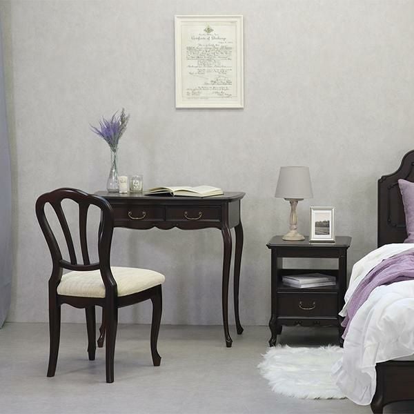 18世紀、ルイ15世時代のフランス宮廷から始まり、貴族の宮殿や上流階級のご婦人を中心に流行した、直線を排した軽快で華麗なフランス・サロン文化を彩る装飾様式だったロココ調家具のエッセンスを残したフレンチカントリースタイルを、よりカジュアルに実用的なアイテムでセレクトしたトータルコーディネートシリーズです。マホガニー材を贅沢に使い、表面は厳選された木目を使った化粧張りを施し、フレンチエレガンスの代名詞といえる「カブリオールレッグ」(猫脚)と、なめらかな女性的な美しいラインとマホガニー無垢材を削り出した彫刻が特徴です。