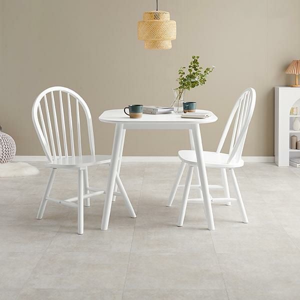 1~2人暮らしにお勧めのサイズ感でワンルームにも置きやすいチェア2脚とテーブルのダイニングセット。