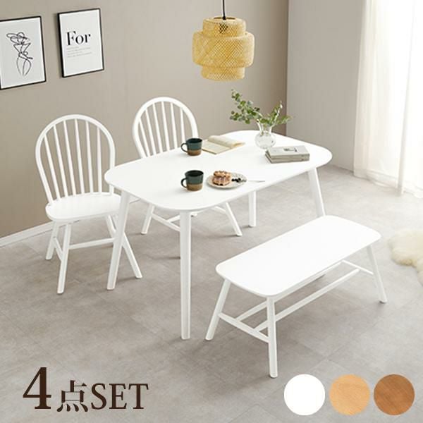 カフェ風がかわいい、ベンチと合わせたダイニング4点セット