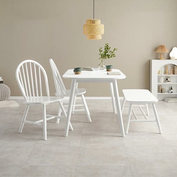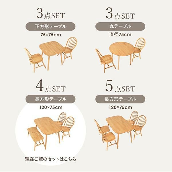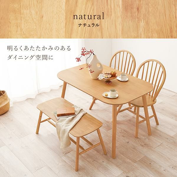 家族で食卓を囲むのにぴったりのサイズ感のテーブルにチェア2脚とベンチが付いたダイニングセット。