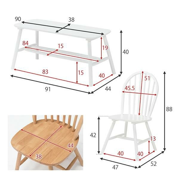 セット内容:テーブル1台+チェア2脚+ベンチ1台