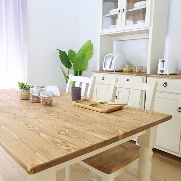 パイン無垢材は、カントリー調の家具に広く使用されており、特にダイニングテーブルや食器棚などにぴったりの素材です。