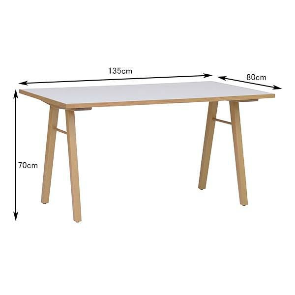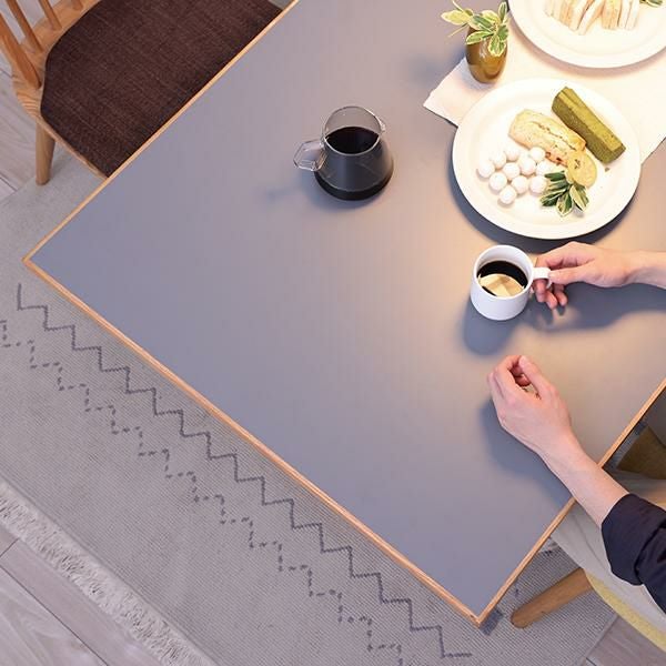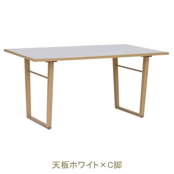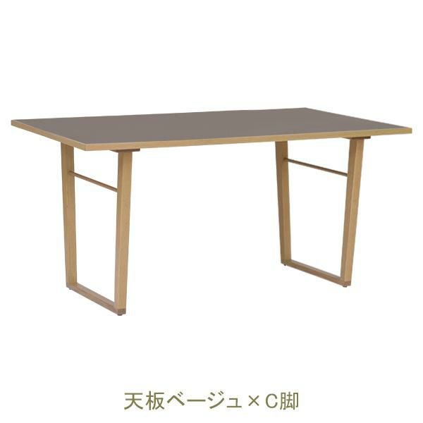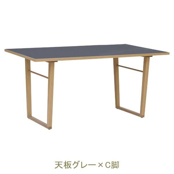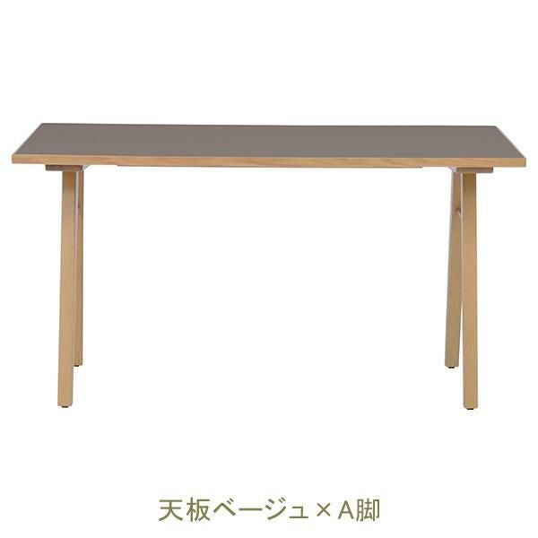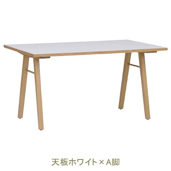 天板はグレー色とホワイト、色ベージュ色の2色のメラミンの全3色から選べます。天板サイズも幅135、150、180と3サイズから選べ、脚もスタイリッシュなA脚と重厚感のあるC脚から選べます。メラミン天板は汚れてしまってもお掃除が簡単に行えます。幅135cmで4人で使用するのにちょうどいいサイズ感です。