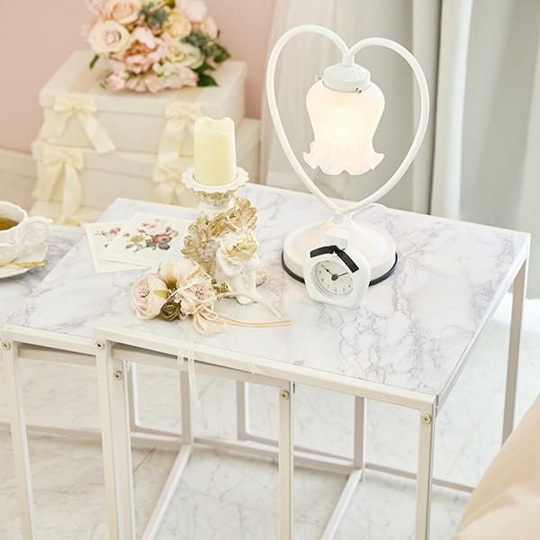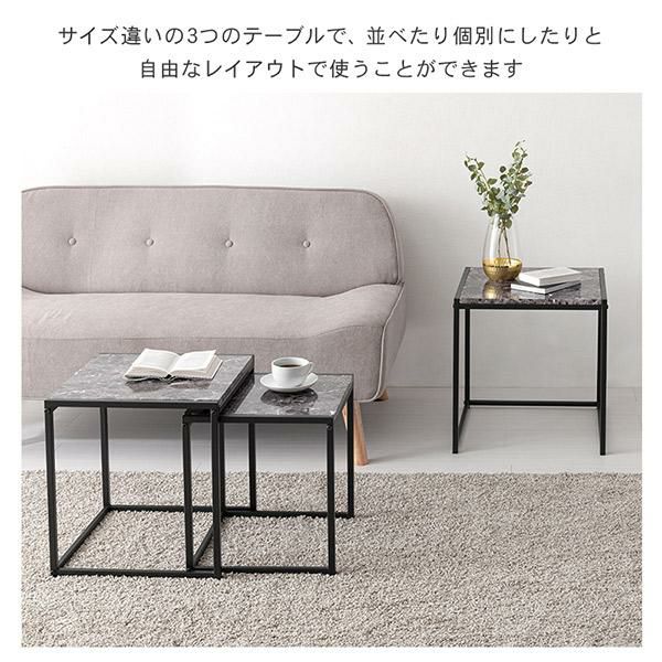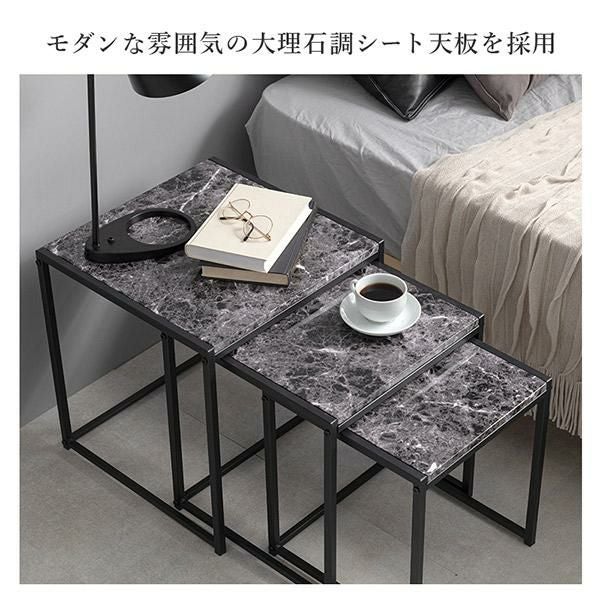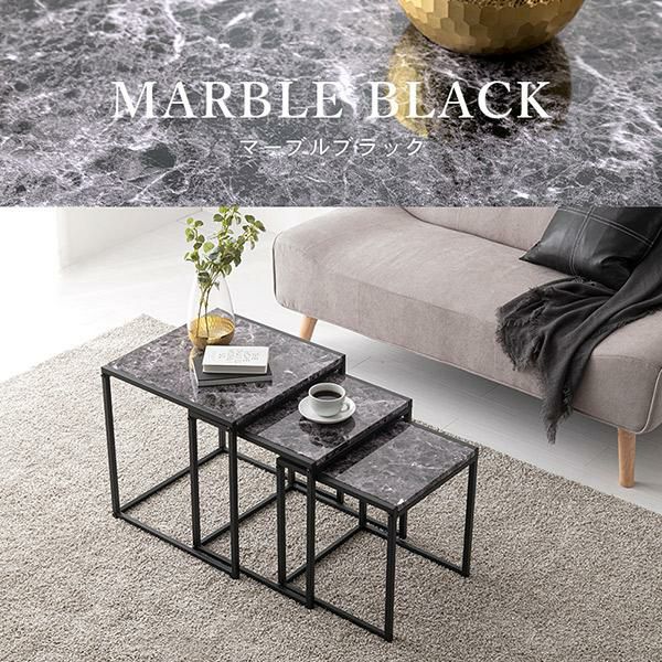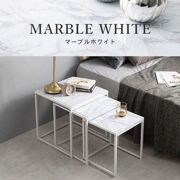 大理石調のマーブル模様が可愛いベッドやソファーサイドにピッタリのネストテーブル
