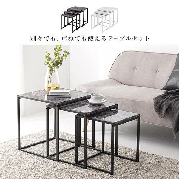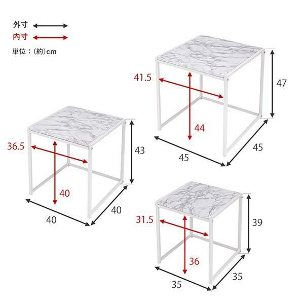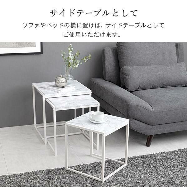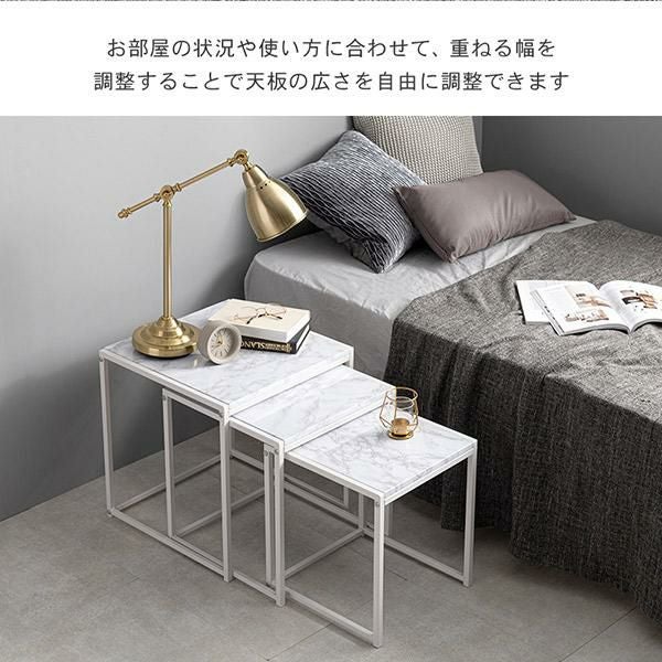ベッドやソファーの横にぴったりのネストテーブル。リモコンや携帯などを置くのにとっても便利。お部屋に合わせてコンパクトに使いつつ、必要な時だけ広く使うことができるます。大理石調のマーブル模様がお部屋のアクセントにもなります。