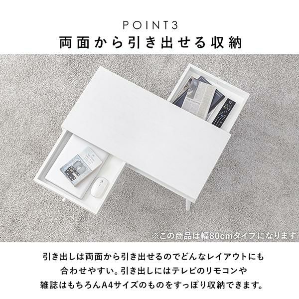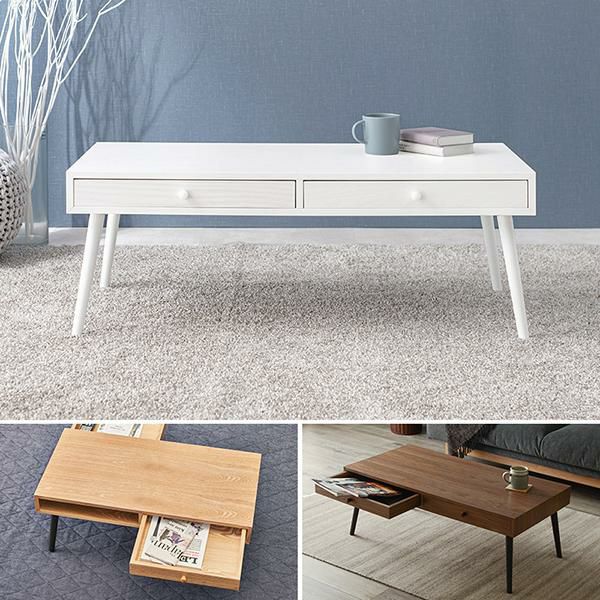 両側から取り出せる引出し付きのシンプルモダンなローテーブル。