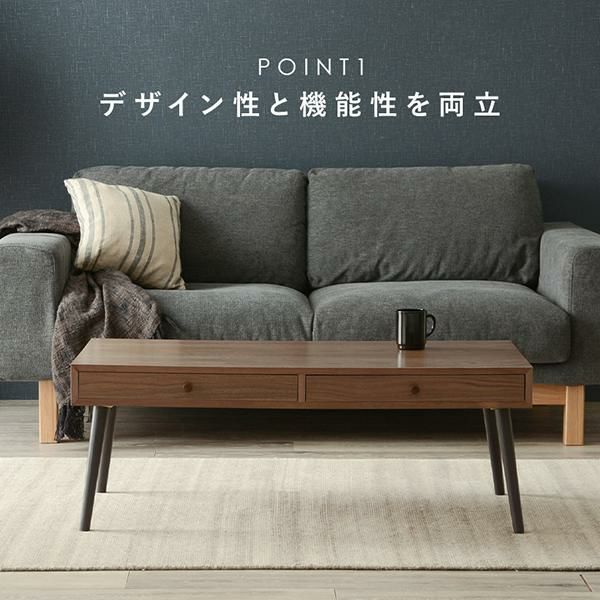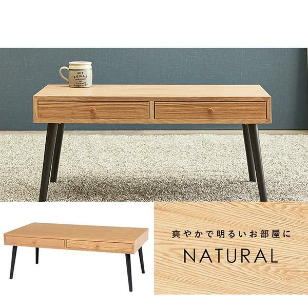 天然木の風合いが優しい幅100cmの引出し2杯付きのローテーブル。