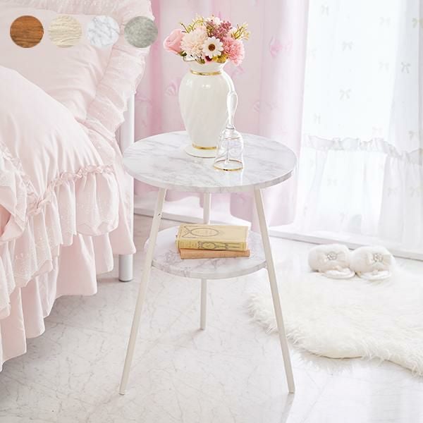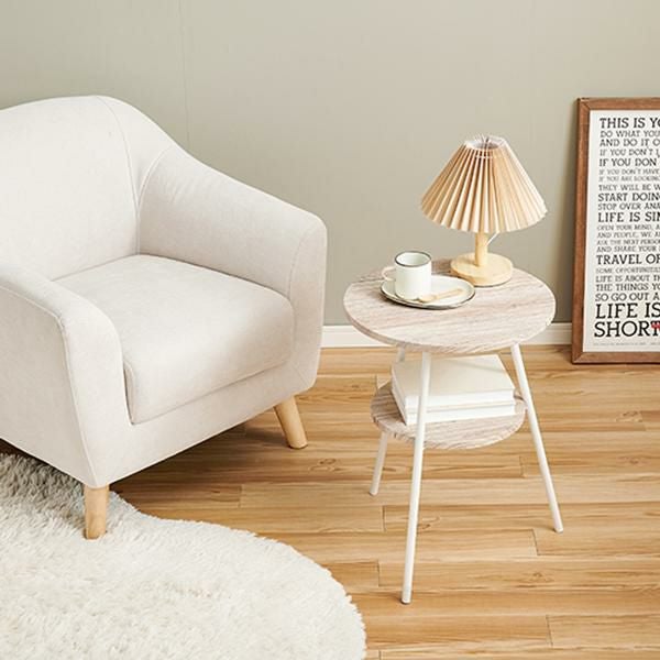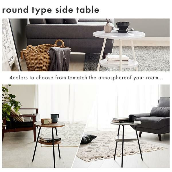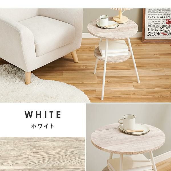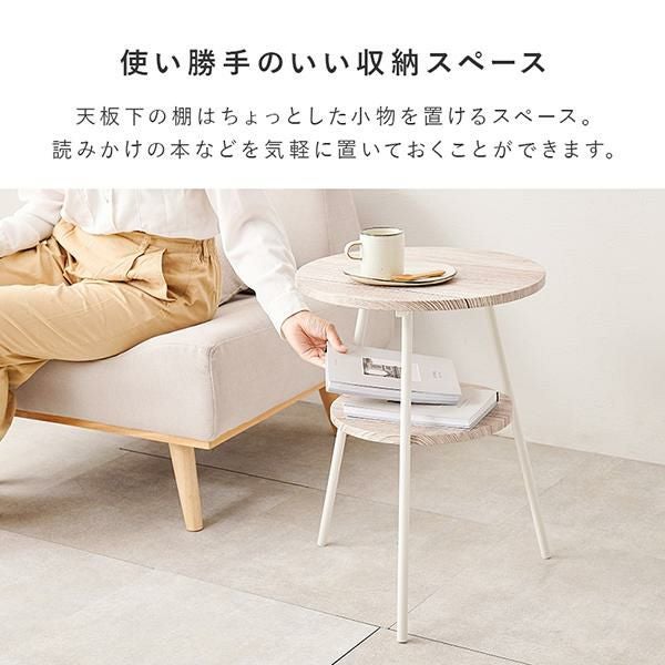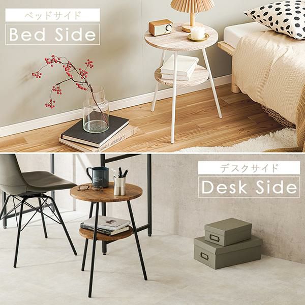 お部屋の雰囲気に合わせて選べる!便利な棚板もついた丸型サイドテーブル