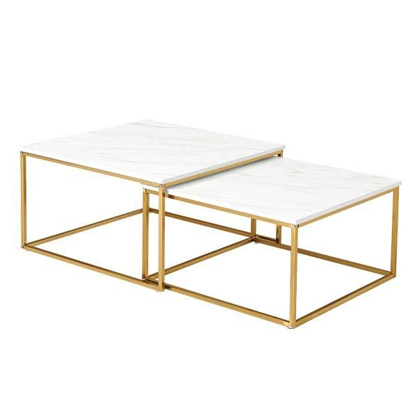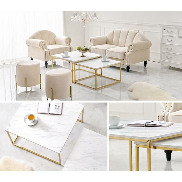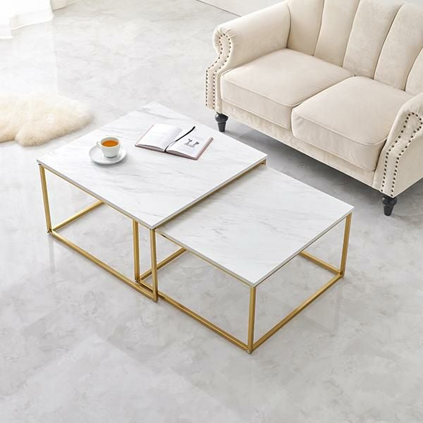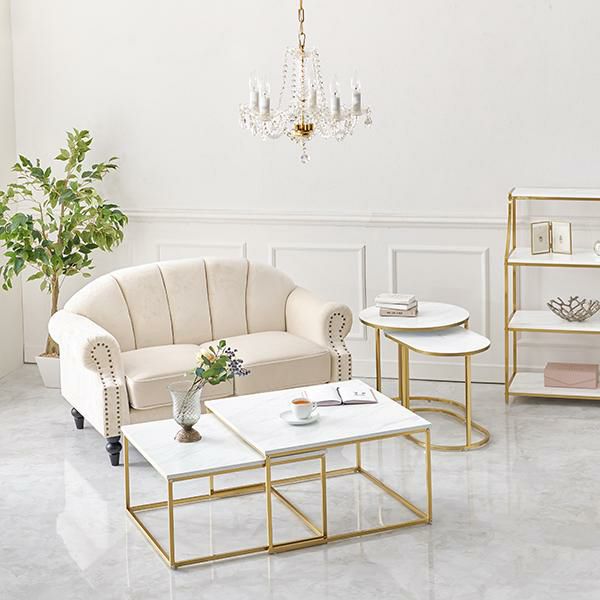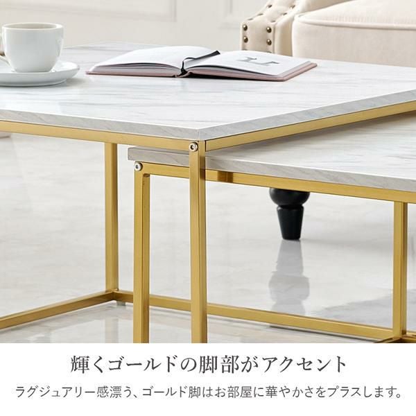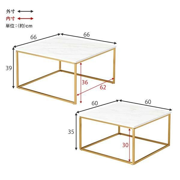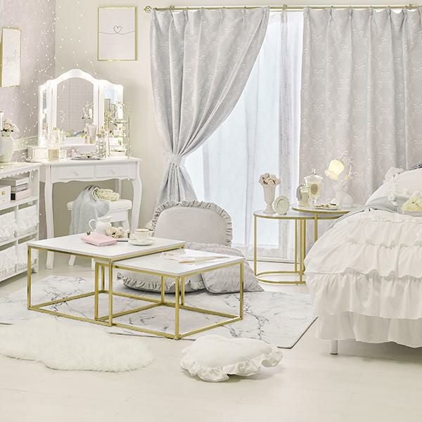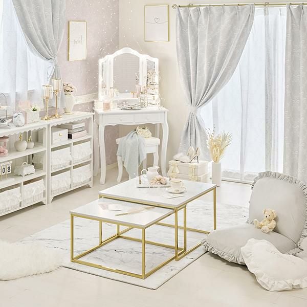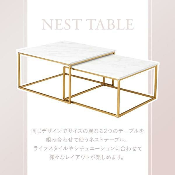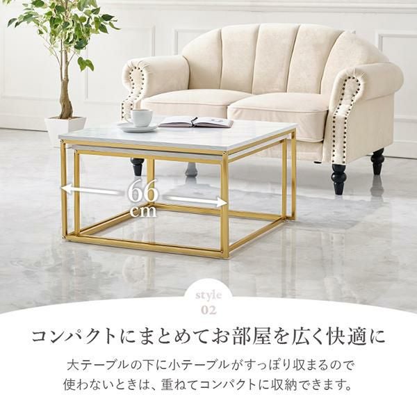 伸縮可能な大理石調のマーブル模様がかわいいテーブル。大・小2つ重なったテーブルは引き出す幅をお部屋に合わせて調整でき、1台ずつでも使用可能でとっても便利!
