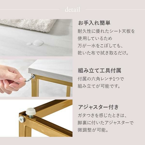 耐久性が高いメラミン樹脂加工した天板は汚れがや傷に強い性質が特徴。