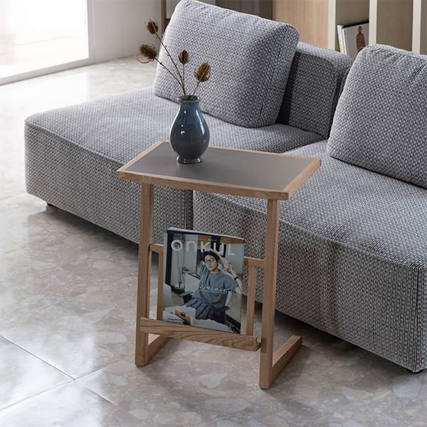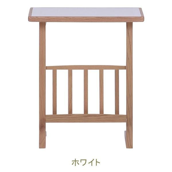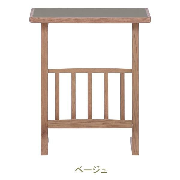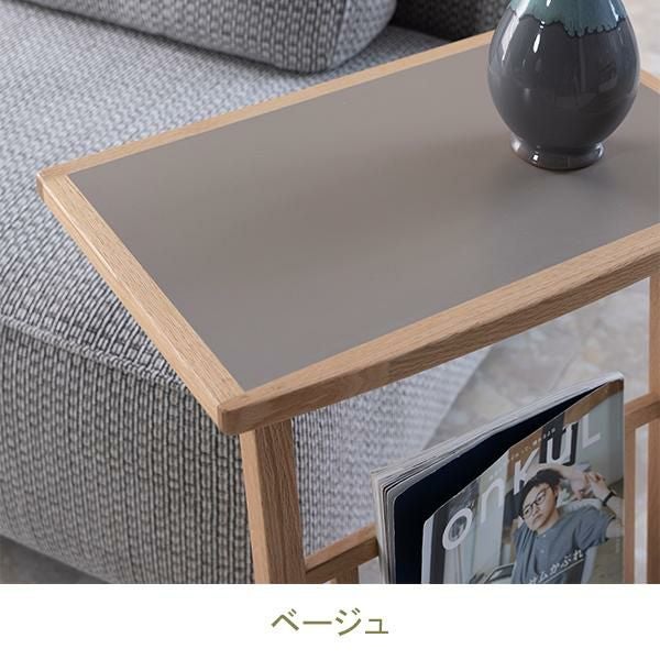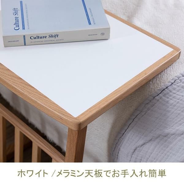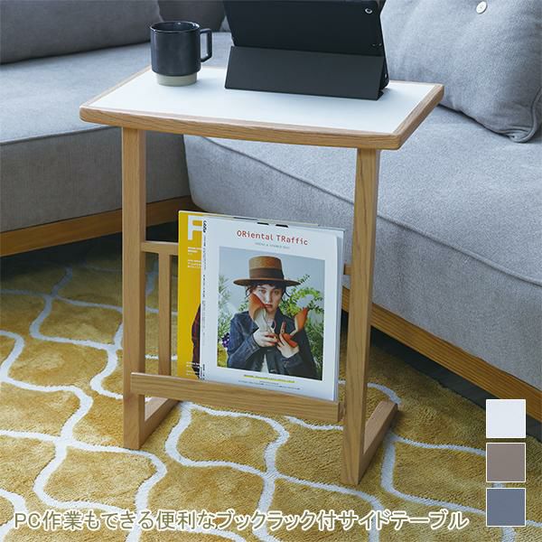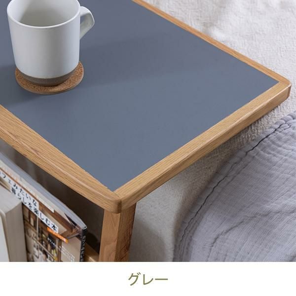 便利なラック付きのサイドテーブル。天板はグレー色とホワイト色、ベージュ色の3色から選べます。メラミン天板は汚れてしまってもお掃除が簡単に行えます。
