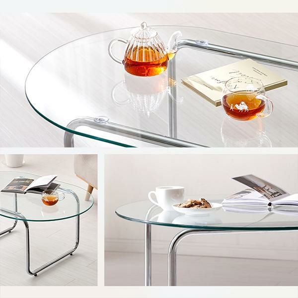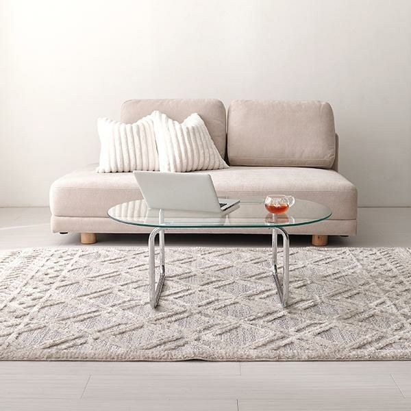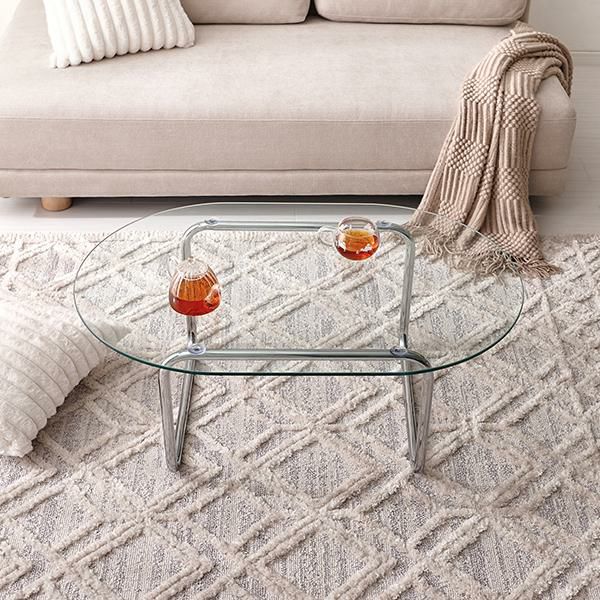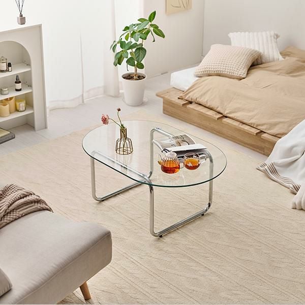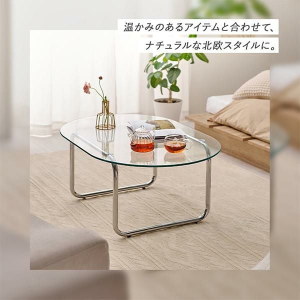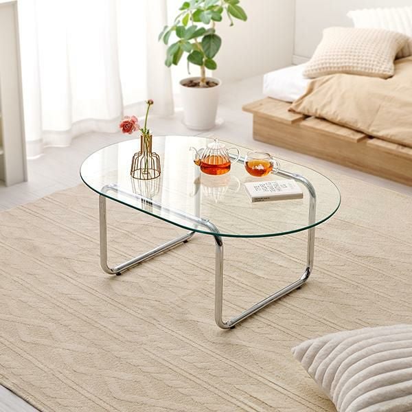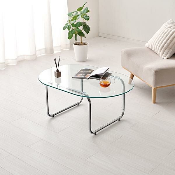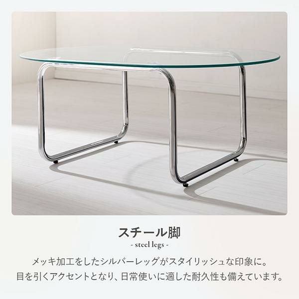 ガラスの輝きや透明感はお部屋に解放感を与え、シンプルながらも存在感を放ち、ワンランク上の空間を演出。メッキ加工を施したシルバーレッグがスタイリッシュな印象で目を引くアクセントに。日常使いに適した耐久性も備えています。モノトーンなアイテムと合わせれば洗練されたモダンスタイルに。温かみのあるアイテムと合わせてナチュラルなコーディネートも楽しんでいただけます。テーブルの高さは38cmで床座りしてもソファに合わせても違和感のないくつろぎやすい快適な高さ。また脚幅を広く設計することで優れた安定感を実現しました。天板をしっかり支えてくれるから転倒しづらく安心してご使用いただけます。