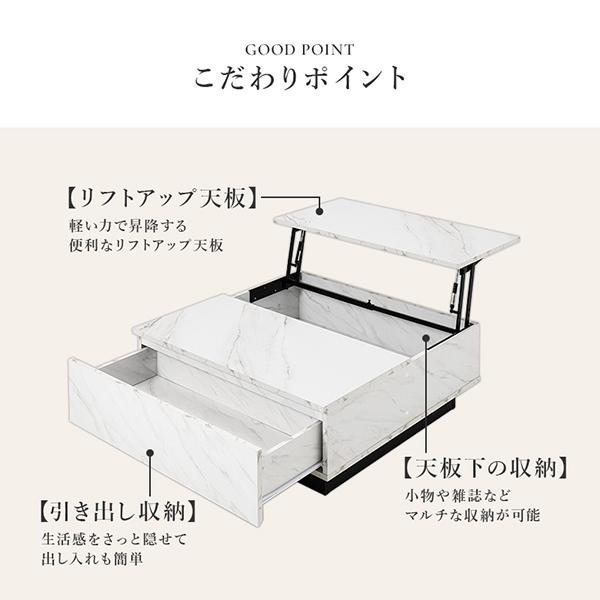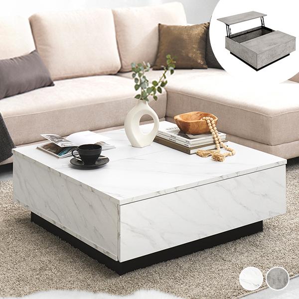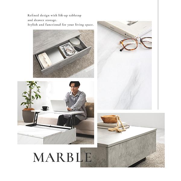 憧れの海外インテリアを叶える、ストーン調昇降式テーブル(幅90cm)