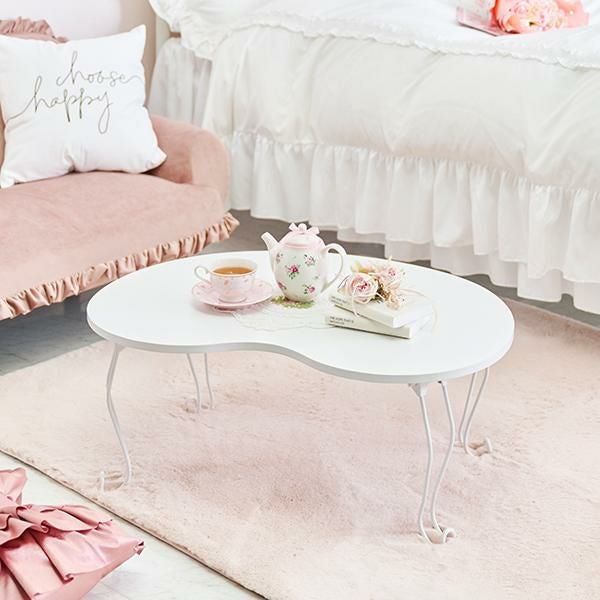 ウェーブシルエットが可愛い!韓国風インテリアは勿論、フレンチガーリーなお部屋にも馴染むコンパクトテーブル