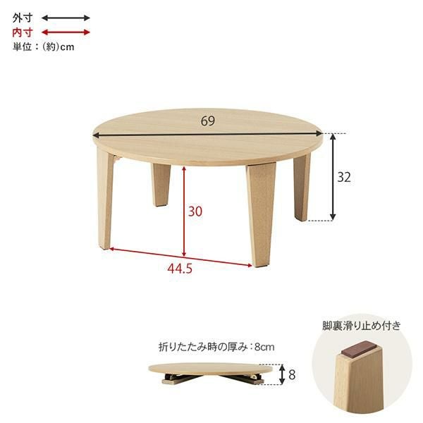 使いたい時だけサッと出して使える折りたたみテーブルは、完成品なので、届いてすぐにお使いいただけます。角のないデザインなので、圧迫感が少なく、柔らかい印象に♪