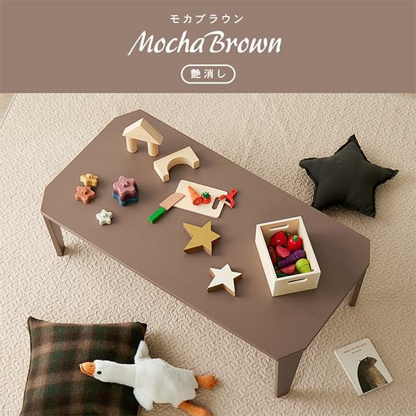 鏡面仕上げのモノトーンカラー「クリアホワイト」「クリアブラック」、マットな質感が落ち着く艶消し仕上げの、そのほか「アースカラー」「木目調」の選べる8色!使いたい時だけサッと出して使える折りたたみテーブルは、収納もコンパクトにでき、完成品なので届いてすぐにお使いいただけます。しっかりと広さがあるので、食事や作業など日常使いのメインテーブルに。大人4人でも囲めるサイズ感は来客時も安心♪角のないデザインなので、圧迫感が少なく、柔らかい雰囲気のコーディネートにぴったりです。