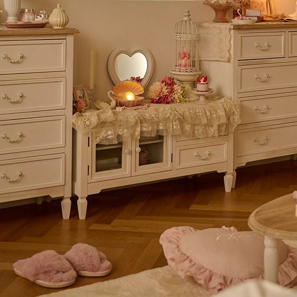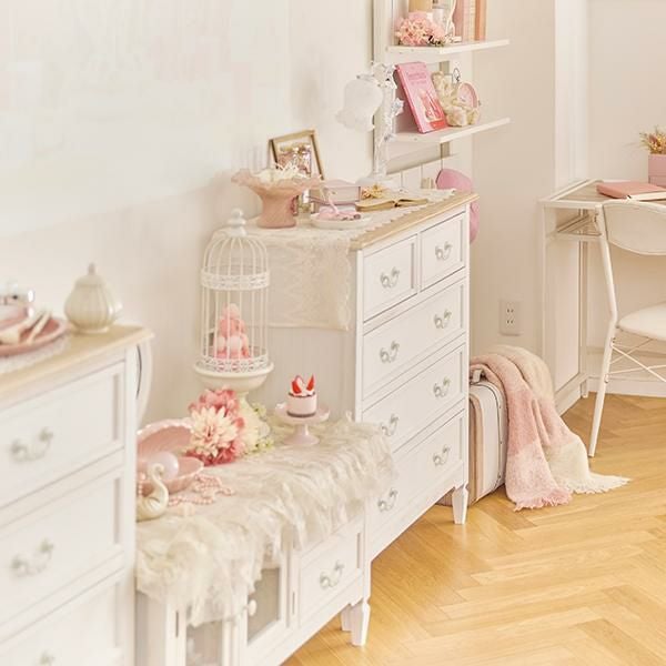お部屋を優しい雰囲気にしてくれる、温もりのあるアンティーク風家具。ナチュラルな天板や取っ手など、オトメ心をくすぐるこだわりもいっぱい。