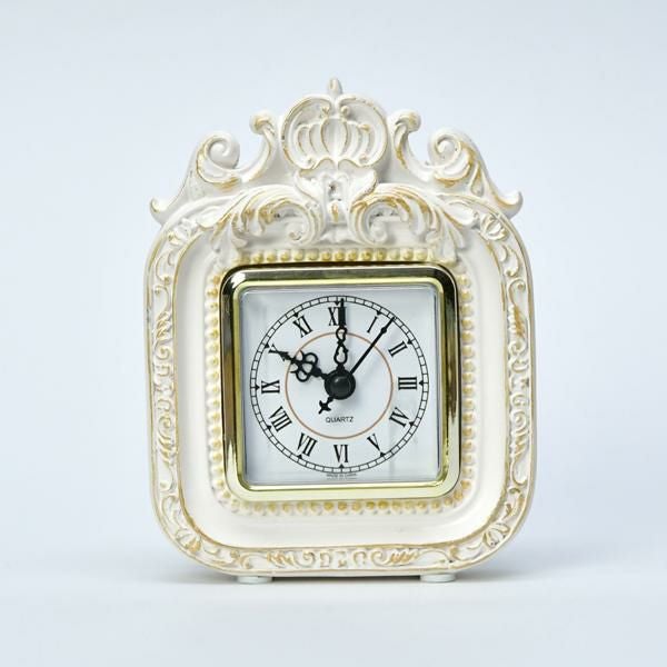 小ぶりなサイズの時計はクラシカルな仕上がりで置き場所を選びません。立体感のある繊細な装飾にシャビーな仕上がりは高級感がありギフトにもぴったりです。