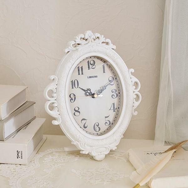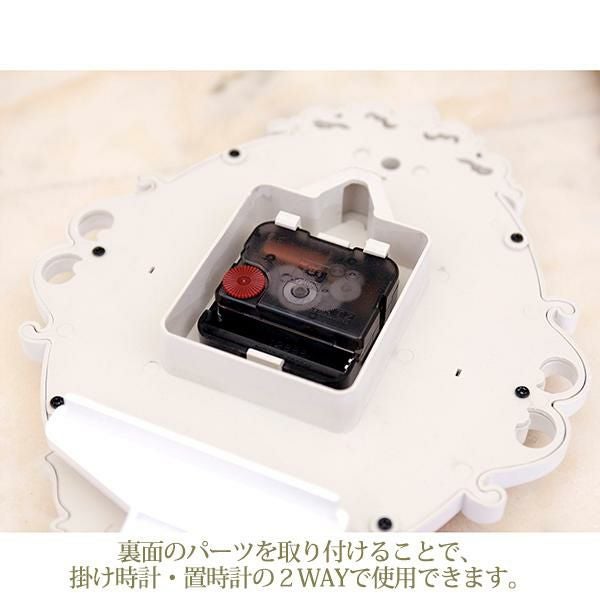 上品でゴージャスなビクトリアン調の置時計。置時計としてだけではなく、掛け時計としてもご使用いただけます。ホワイトカラーに繊細に施された装飾が、よりエレガントなムードを盛り上げます。ワンランク上のインテリアコーディネートが叶いそう♪