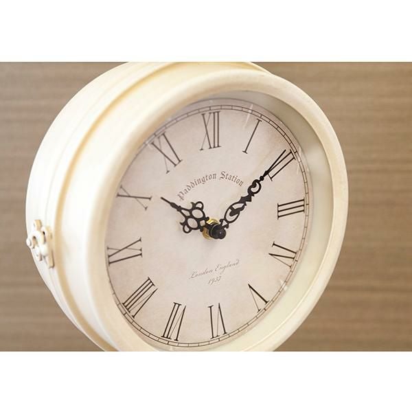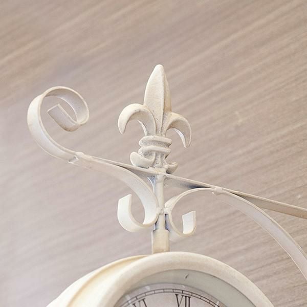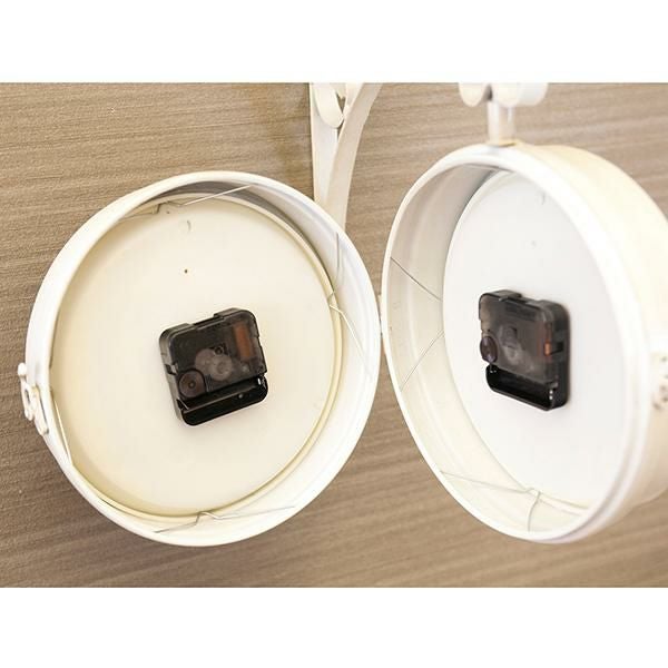 海外の駅で見かけそうなおしゃれな壁掛両面時計です。少し黄色味がかったアンティークホワイトのカラーが優しい印象で、実用性のあるインテリアとしておすすめ。文字盤は時間を確認しやすいはっきりとしたデザインで、時計がくるくるまわる回転仕様の時計です。