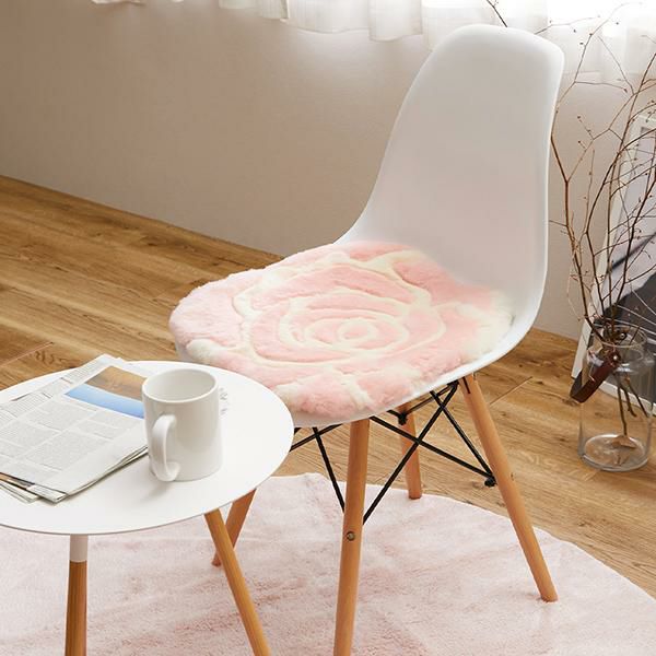 少し丸みを帯びた馬蹄形のシートクッション。バラモチーフのデザインが上品でラグジュアリーなムードが漂います。