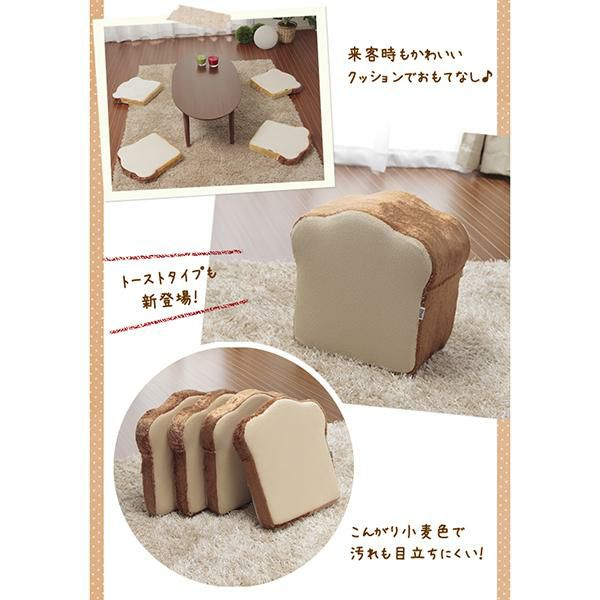 食パンとトースト2種類のカラー展開です。低反発ウレタンシートのもちもちの感触に癒される食パンクッション4枚切りセット♪