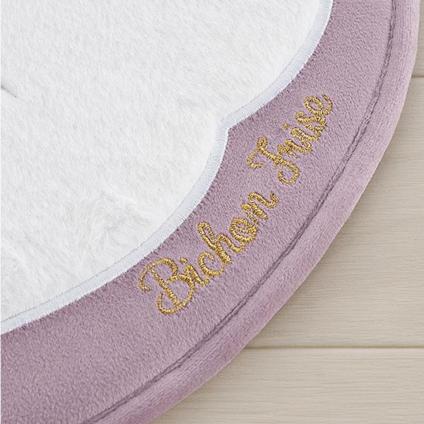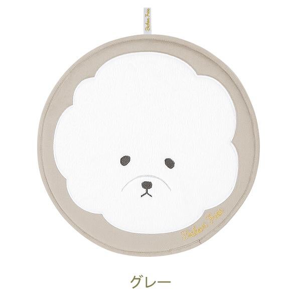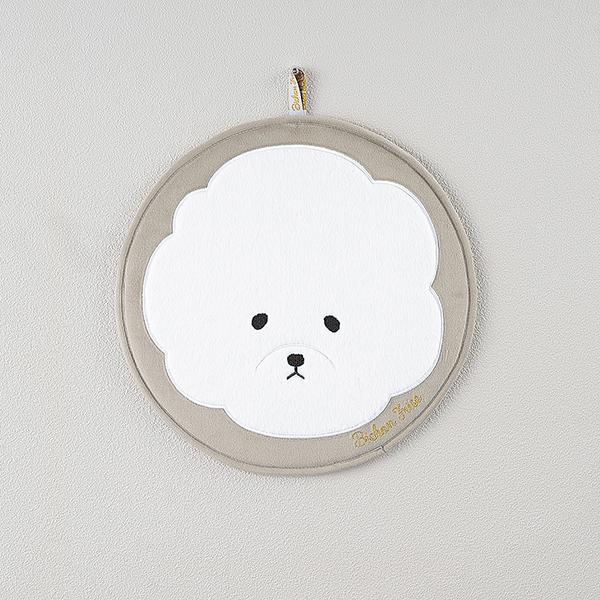 いつもの椅子が、あっという間にお気に入りの特等席に。ポリエステル生地に大胆なビッグサイズのアップリケ刺繍を施した、遊び心あふれるチェアパッド。思わず触れたくなるファー生地の質感でビションフリーゼならではの「ふわふわ感」を贅沢に表現しました。中材には厚みのあるしっかりとしたウレタンを入れているので、底付き感がなく、型崩れしにくいのも嬉しいポイントです。見た目の可愛さと快適な座り心地で、おうち時間をより癒しのひと時に。