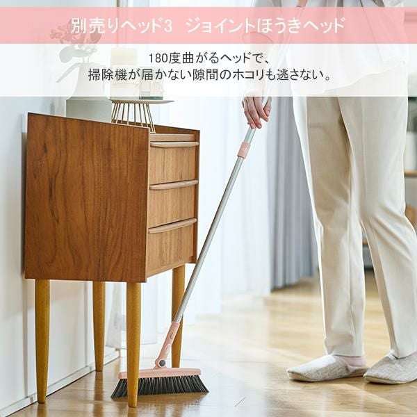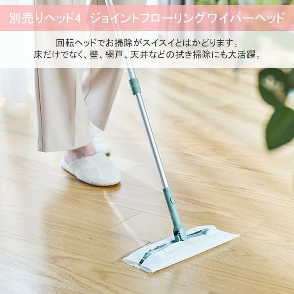 これ1本で4種類のヘッドが付け替えられるので、家中の様々な場所を掃除できます。各種アタッチメントヘッドの脱着は、ワンタッチで簡単。ハンドル先端部のフック穴は回転式になっているので、取り付け環境やアタッチメントヘッドに合わせて好きな方向に調節して吊るすことができます。