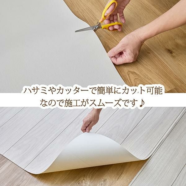 床が主役になる♪暮らしが変わるクッションフロアシート!敷くだけで簡単に傷や汚れから床を守ります。塩ビ素材で撥水・防汚機能が施されており、汚れてもサッと拭き取れるので、衛生的。お部屋全体の模様替えだけでなく、キッチンやサニタリー、玄関など、ちょっとした模様替えやDIYにもピッタリ!敷くだけなので賃貸の退去時にもすぐに撤去できて安心。幅91cmと一般的なクッションフロアの半分のサイズで、女性1人でも持ち運びや施工がしやすい仕様にこだわりました。さらに、ハサミやカッターでお好きな長さや形にカットできるので、どんな間取りでもピッタリに。7柄×10サイズからお好きなアイテムをお選びいただけます♪