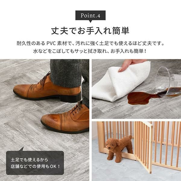 貼ってはがせて、何度も繰り返し使えるストーン調のフロアタイル。フィルムをはがして、床の上から貼るだけでお部屋を簡単にイメージチェンジできます。リアルなストーン調の柄でモノトーンインテリアや海外風インテリアにぴったり!賃貸や新築の床への汚れや傷の防止にも。キッチンや洗面所など水周りにも使えて、粘着が落ちても水で洗えば繰り返しご使用いただけます。カッターで簡単にカットでき、お部屋の形に合わせて自由に敷き詰められます。