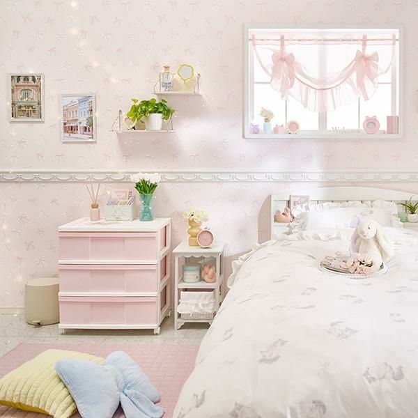 ロマンティックなリボンが可愛い、淡いピンクのウォールペーパー5本セット♪