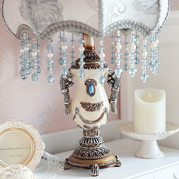 ローズ柄シェードの重厚感のあるアンティーク風ランプ