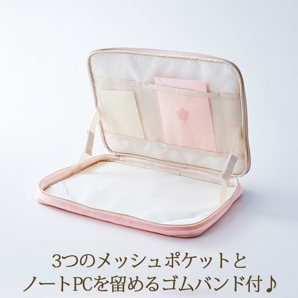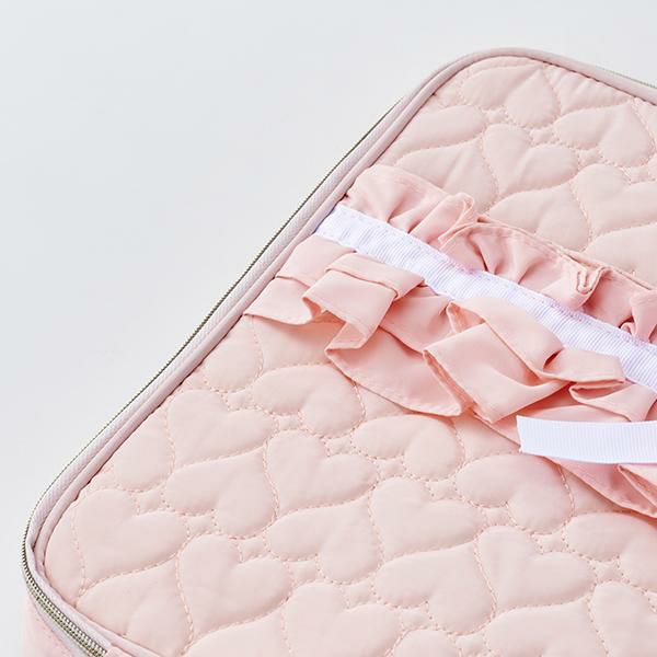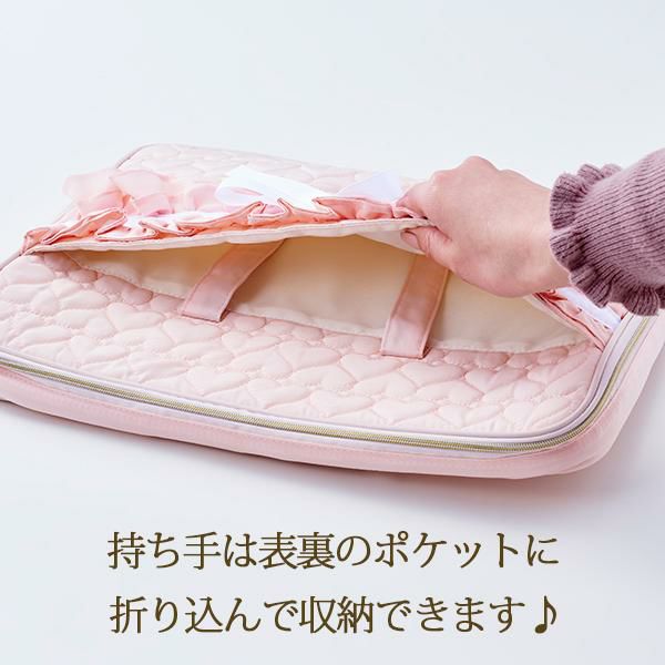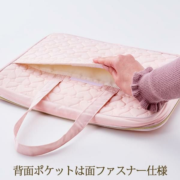 学校やオフィス勤務の日はPCケースをバッグインバッグとしても。ハートのキルティング素材が大切なアイテムを可愛く彩ります。