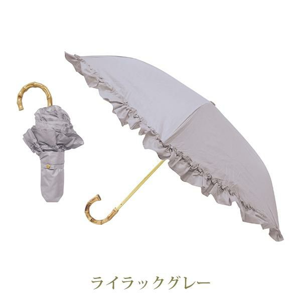 たっぷりフリルと持ち手が上品な、完全遮光の折りたたみ傘。