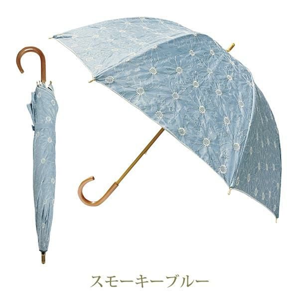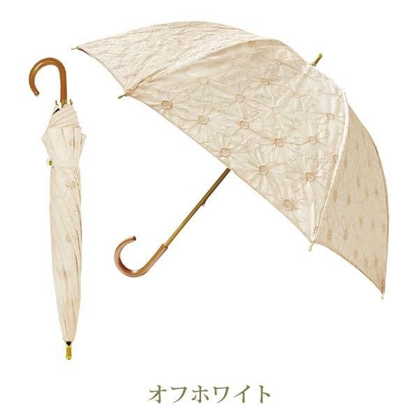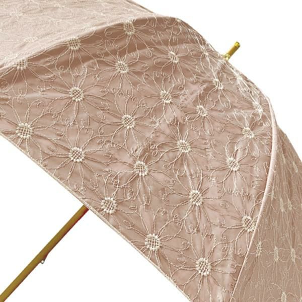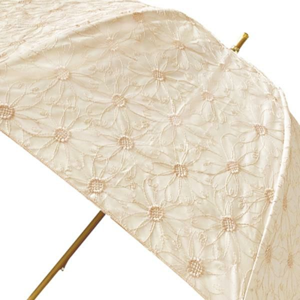 全体に施されたデイジーの刺繍とシンプルな持ち手が上品な、完全遮光のアンブレラ。